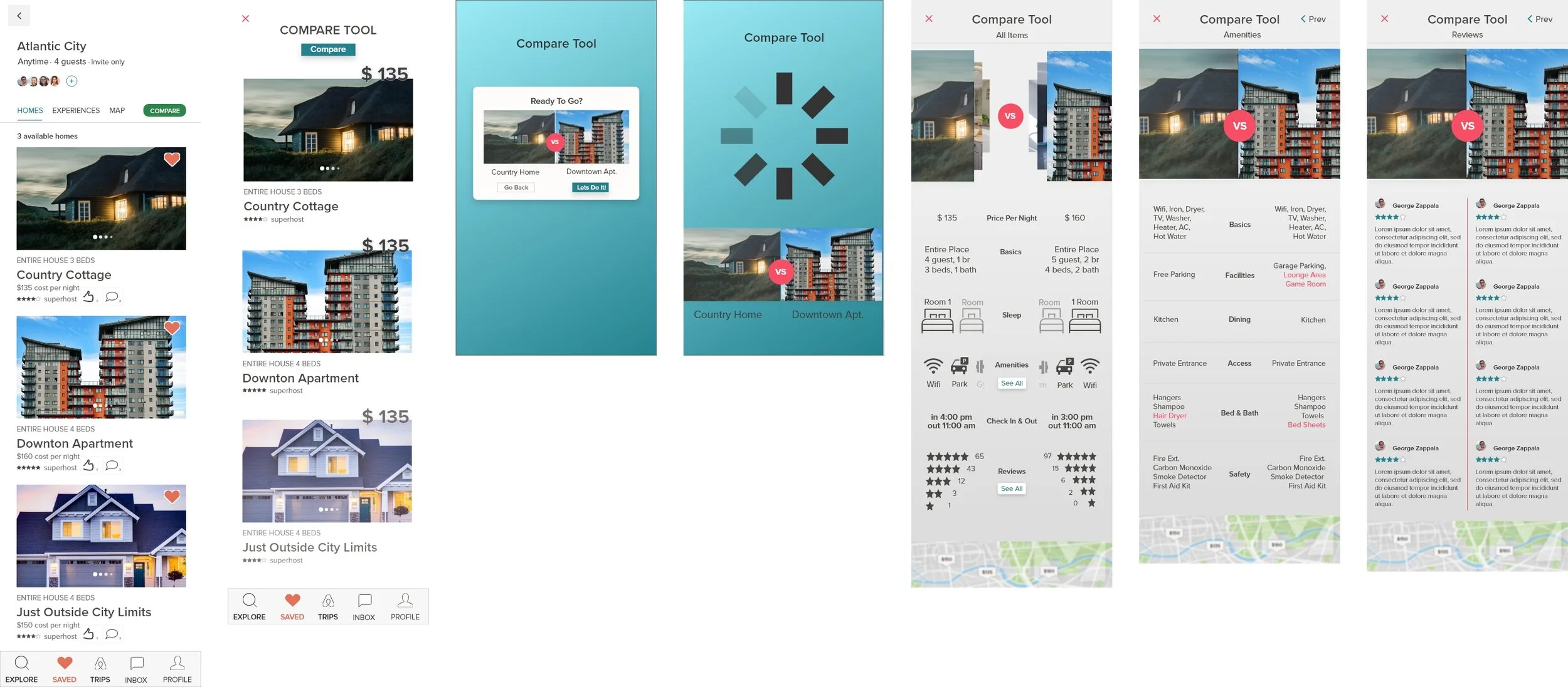Below is a small sample of the high fidelity screens depicting the compare tool, as well as others such as the feedback and internal mapping feature. Feel free to skim through them.